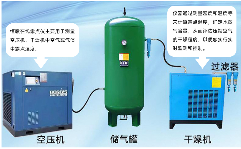 对于压缩空气系统,建议安装在干燥机出口处,以便实时监测干燥后的气体露点。